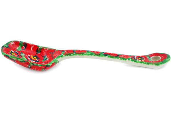 This Savvy Scarlet 5" Sugar Spoon was handmade and hand decorated in Boleslawiec, Poland by skilled artisans according to old traditional methods. This is a Polish pottery Signature Unikat, which means that it has been hand painted with both sponges and brushes and it is signed by the artist who painted it. Unikat pieces are the most intricate works of art. Larger Unikat items take hours of very careful work to finish. This Polish stoneware is microwave, dishwasher, freezer, and oven safe up to 480°F. It does not contain lead or cadmium. It is part of the Savvy Scarlet Collection.