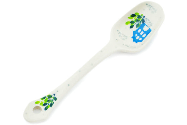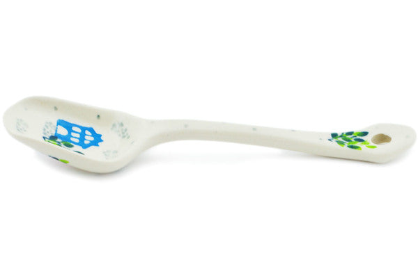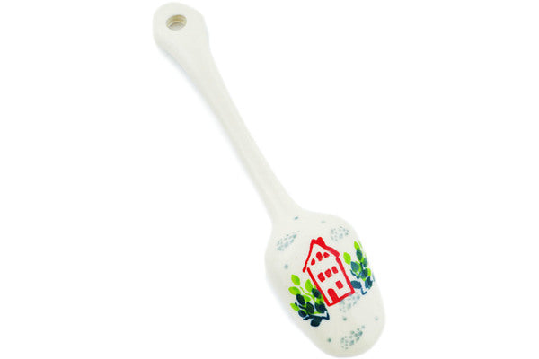 This Sweet Little Village 5" Sugar Spoon was handmade and hand decorated in Boleslawiec, Poland by skilled artisans according to old traditional methods. This is a Polish pottery Signature Unikat, which means that it has been hand painted with both sponges and brushes and it is signed by the artist who painted it. Unikat pieces are the most intricate works of art. Larger Unikat items take hours of very careful work to finish. This Polish stoneware is microwave, dishwasher, freezer, and oven safe up to 480°F. It does not contain lead or cadmium. It is part of the Sweet Little Village Collection.