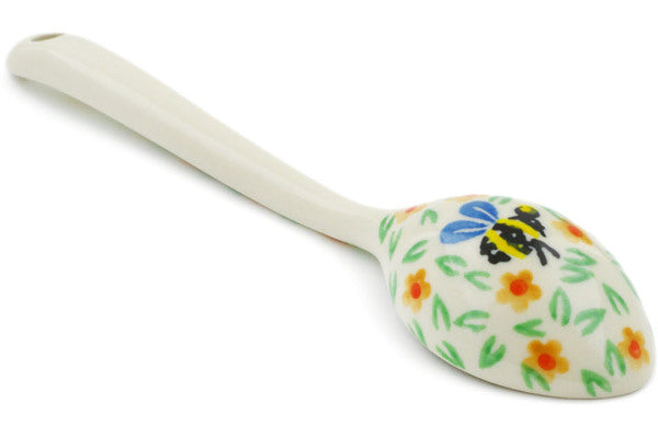 This Honey Bee 6" Spoon was handmade and hand decorated in Boleslawiec, Poland by skilled artisans according to old traditional methods. This Polish stoneware is microwave, dishwasher, freezer, and oven safe up to 480°F. It does not contain lead or cadmium. It is part of the Honey Bee Collection.