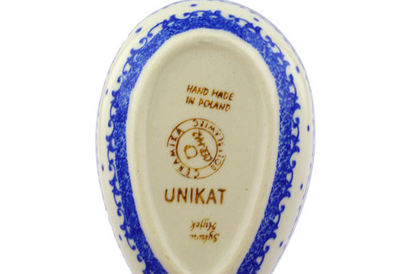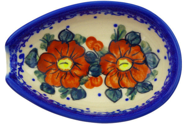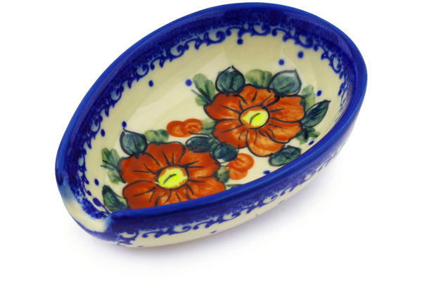 This Autumn Pansies 5" Spoon Rest was handmade and hand decorated in Boleslawiec, Poland by skilled artisans according to old traditional methods. This is a Polish pottery Signature Unikat, which means that it has been hand painted with both sponges and brushes and it is signed by the artist who painted it. Unikat pieces are the most intricate works of art. Larger Unikat items take hours of very careful work to finish. This Polish stoneware is microwave, dishwasher, freezer, and oven safe up to 480°F. It does not contain lead or cadmium. It is part of the Autumn Pansies Collection.