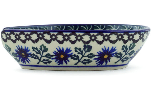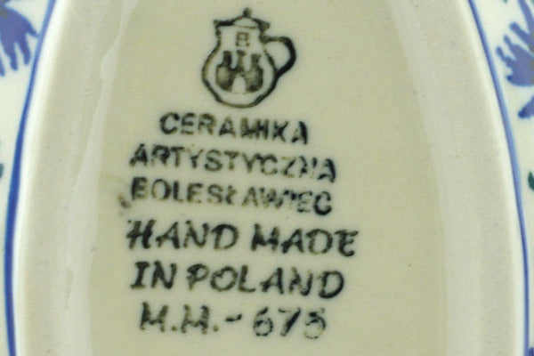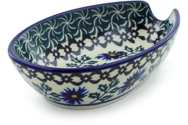 This Blue Chicory 5" Spoon Rest was handmade and hand decorated in Boleslawiec, Poland by skilled artisans according to old traditional methods. This Polish stoneware is microwave, dishwasher, freezer, and oven safe up to 480°F. It does not contain lead or cadmium. It is part of the Blue Chicory Collection.