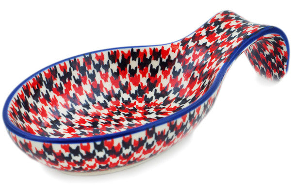 This Red Houndstooth 7" Spoon Rest was handmade and hand decorated in Boleslawiec, Poland by skilled artisans according to old traditional methods. This Polish stoneware is microwave, dishwasher, freezer, and oven safe up to 480°F. It does not contain lead or cadmium. It is part of the Red Houndstooth Collection.