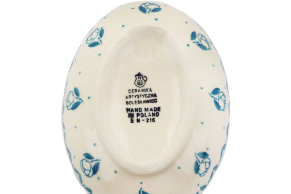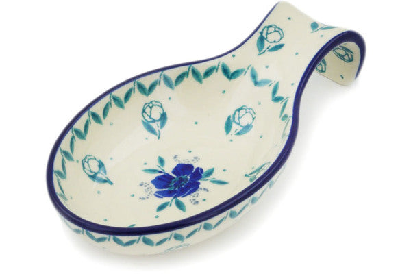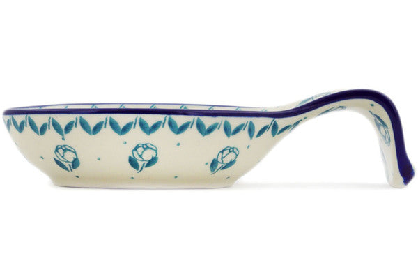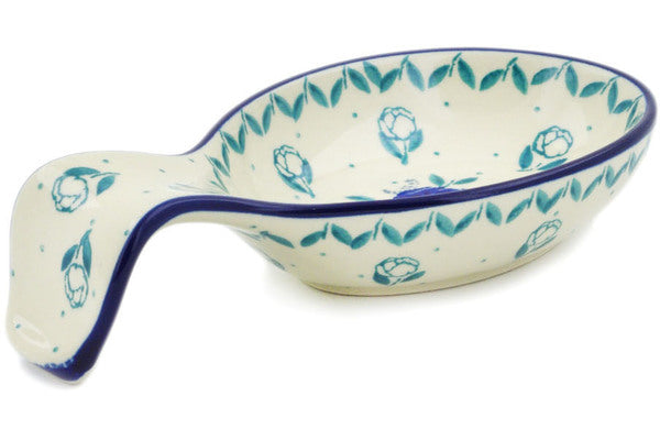 This Spearmint Rose 7" Spoon Rest was handmade and hand decorated in Boleslawiec, Poland by skilled artisans according to old traditional methods. This Polish stoneware is microwave, dishwasher, freezer, and oven safe up to 480°F. It does not contain lead or cadmium. It is part of the Spearmint Rose Collection.