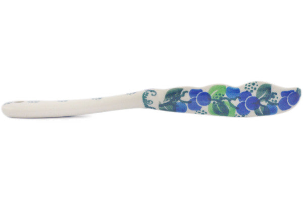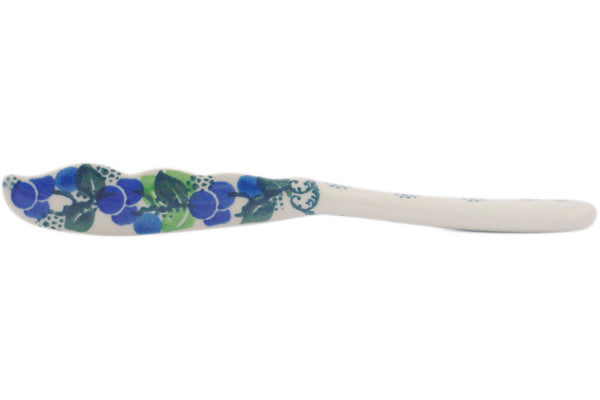 This Blue Berry Garland 7" Spreading Knife was handmade and hand decorated in Boleslawiec, Poland by skilled artisans according to old traditional methods. This Polish stoneware is microwave, dishwasher, freezer, and oven safe up to 480°F. It does not contain lead or cadmium. It is part of the Blue Berry Garland Collection.