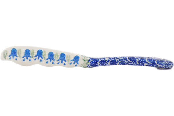 This Blue Tulip 7" Spreading Knife was handmade and hand decorated in Boleslawiec, Poland by skilled artisans according to old traditional methods. This Polish stoneware is microwave, dishwasher, freezer, and oven safe up to 480°F. It does not contain lead or cadmium. It is part of the Blue Tulip Collection.