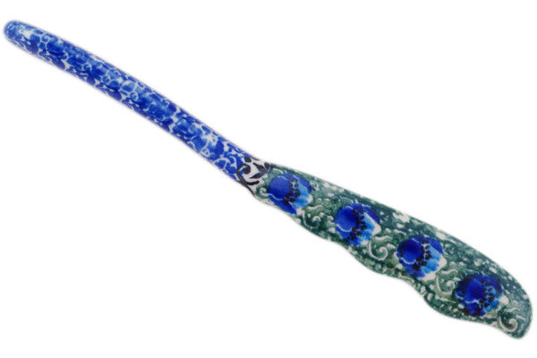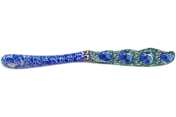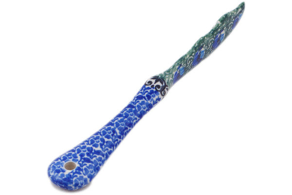 This Emerald Tulips 7" Spreading Knife was handmade and hand decorated in Boleslawiec, Poland by skilled artisans according to old traditional methods. This Polish stoneware is microwave, dishwasher, freezer, and oven safe up to 480°F. It does not contain lead or cadmium. It is part of the Emerald Tulips Collection.