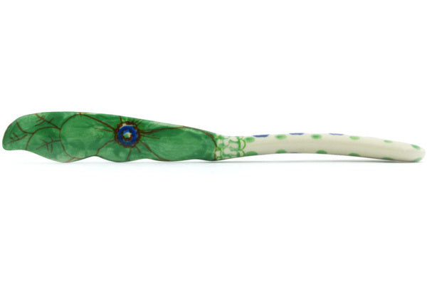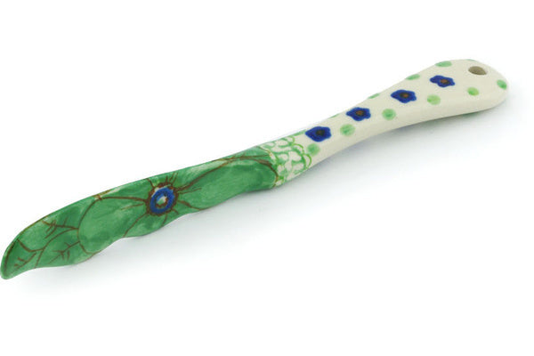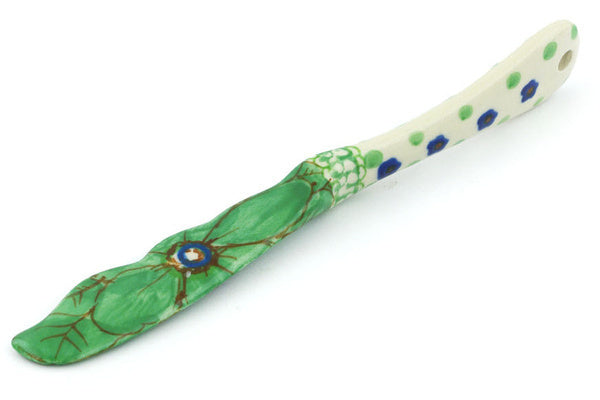 This Key Lime Dreams 7" Spreading Knife was handmade and hand decorated in Boleslawiec, Poland by skilled artisans according to old traditional methods. This is a Polish pottery Signature Unikat, which means that it has been hand painted with both sponges and brushes and it is signed by the artist who painted it. Unikat pieces are the most intricate works of art. Larger Unikat items take hours of very careful work to finish. This Polish stoneware is microwave, dishwasher, freezer, and oven safe up to 480°F. It does not contain lead or cadmium. It is part of the Key Lime Dreams Collection.