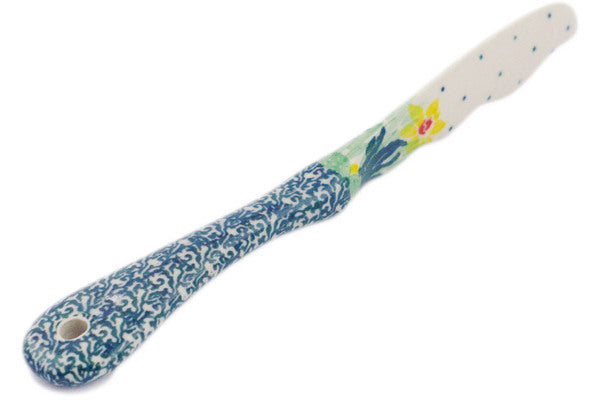 This Summer Meadow 7" Spreading Knife was handmade and hand decorated in Boleslawiec, Poland by skilled artisans according to old traditional methods. This Polish stoneware is microwave, dishwasher, freezer, and oven safe up to 480°F. It does not contain lead or cadmium. It is part of the Summer Meadow Collection.