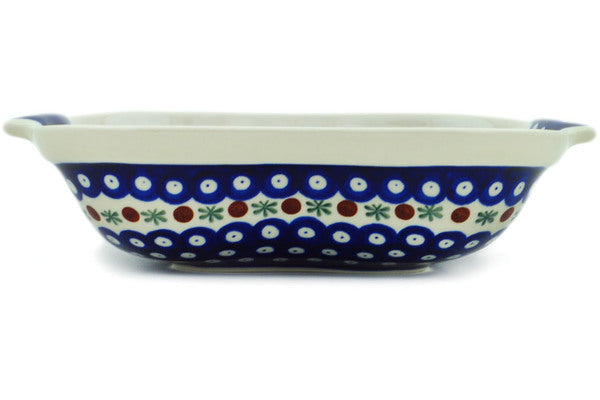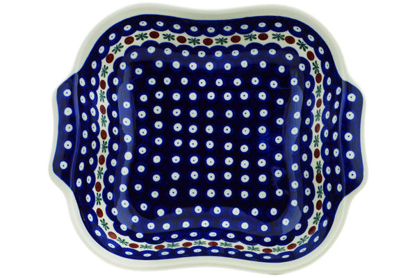 This Mosquito 11" Square Baker with Handles was handmade and hand decorated in Boleslawiec, Poland by skilled artisans according to old traditional methods. This Polish stoneware is microwave, dishwasher, freezer, and oven safe up to 480°F. It does not contain lead or cadmium. It is part of the Mosquito Collection.
