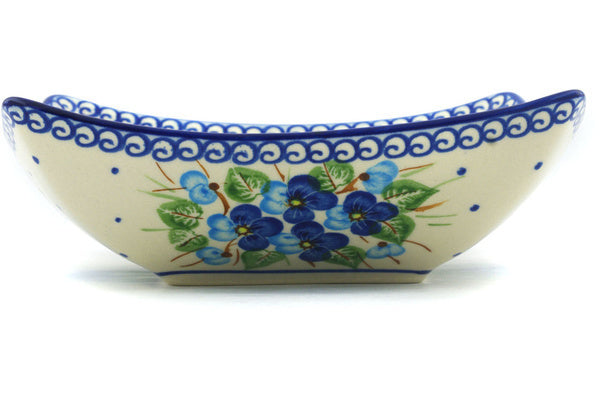 This Blue Pansy 8" Square Bowl was handmade and hand decorated in Boleslawiec, Poland by skilled artisans according to old traditional methods. This Polish stoneware is microwave, dishwasher, freezer, and oven safe up to 480°F. It does not contain lead or cadmium. It is part of the Blue Pansy Collection.