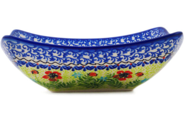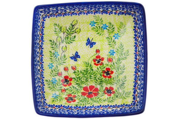 This Metamorphosis 8" Square Bowl was handmade and hand decorated in Boleslawiec, Poland by skilled artisans according to old traditional methods. This Polish stoneware is microwave, dishwasher, freezer, and oven safe up to 480°F. It does not contain lead or cadmium. It is part of the Metamorphosis Collection.
