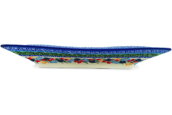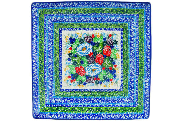 This Copper Rose 10" Square Plate was handmade and hand decorated in Boleslawiec, Poland by skilled artisans according to old traditional methods. This is a Polish pottery Signature Unikat, which means that it has been hand painted with both sponges and brushes and it is signed by the artist who painted it. Unikat pieces are the most intricate works of art. Larger Unikat items take hours of very careful work to finish. This Polish stoneware is microwave, dishwasher, freezer, and oven safe up to 480°F. It does not contain lead or cadmium. It is part of the Copper Rose Collection.