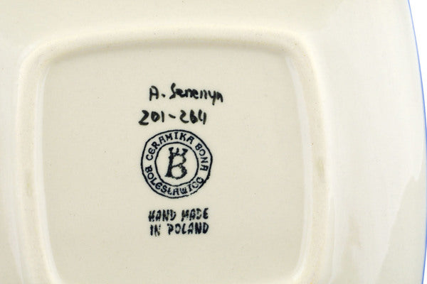 This Blue Poppies 7" Square Plate was handmade and hand decorated in Boleslawiec, Poland by skilled artisans according to old traditional methods. This Polish stoneware is microwave, dishwasher, freezer, and oven safe up to 480°F. It does not contain lead or cadmium. It is part of the Blue Poppies Collection.