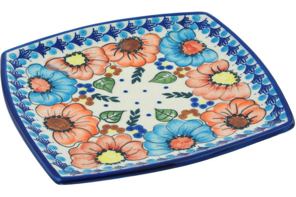 Square Plate 7" Bold Poppies Theme UNIKAT