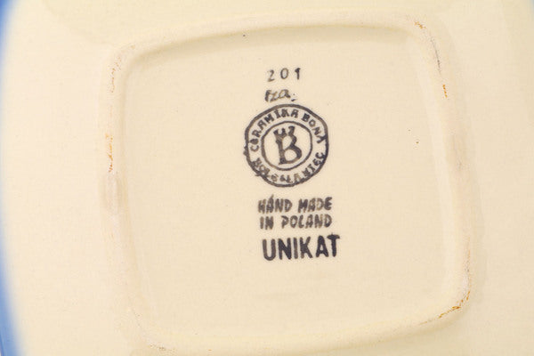 This Cobalt Fantasy 7" Square Plate was handmade and hand decorated in Boleslawiec, Poland by skilled artisans according to old traditional methods. This Polish stoneware is microwave, dishwasher, freezer, and oven safe up to 480°F. It does not contain lead or cadmium. It is part of the Cobalt Fantasy Collection.