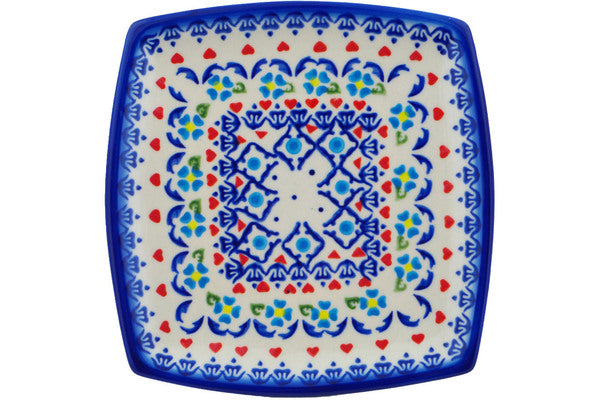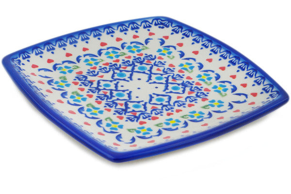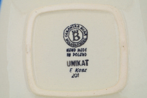 This Graphic Armor 7" Square Plate was handmade and hand decorated in Boleslawiec, Poland by skilled artisans according to old traditional methods. This Polish stoneware is microwave, dishwasher, freezer, and oven safe up to 480°F. It does not contain lead or cadmium. It is part of the Graphic Armor Collection.