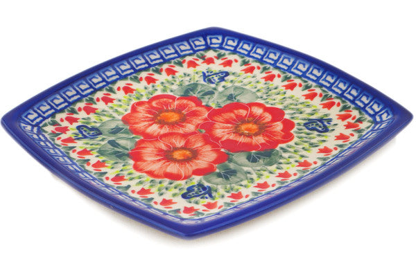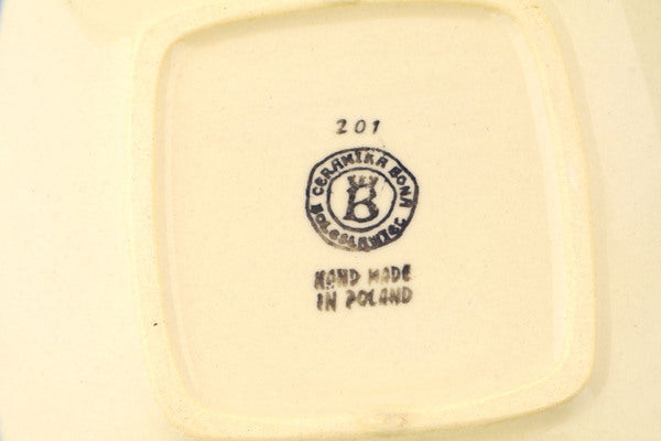 This Happiness 7" Square Plate was handmade and hand decorated in Boleslawiec, Poland by skilled artisans according to old traditional methods. This is a Polish pottery Signature Unikat, which means that it has been hand painted with both sponges and brushes and it is signed by the artist who painted it. Unikat pieces are the most intricate works of art. Larger Unikat items take hours of very careful work to finish. This Polish stoneware is microwave, dishwasher, freezer, and oven safe up to 480°F. It does not contain lead or cadmium. It is part of the Happiness Collection.