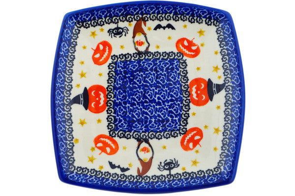 This Harvest Haunt 7" Square Plate was handmade and hand decorated in Boleslawiec, Poland by skilled artisans according to old traditional methods. This Polish stoneware is microwave, dishwasher, freezer, and oven safe up to 480°F. It does not contain lead or cadmium. It is part of the Harvest Haunt Collection.