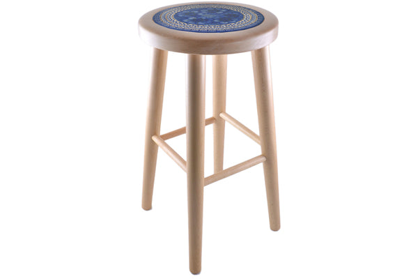 This Midnight 24" Stool was handmade and hand decorated in Boleslawiec, Poland by skilled artisans according to old traditional methods. This is a Polish pottery Signature Unikat, which means that it has been hand painted with both sponges and brushes and it is signed by the artist who painted it. Unikat pieces are the most intricate works of art. Larger Unikat items take hours of very careful work to finish. This Polish stoneware is microwave, dishwasher, freezer, and oven safe up to 480°F. It does not contain lead or cadmium. It is part of the Midnight Collection.