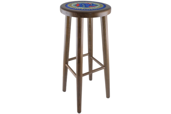 This Aztec Flowers 29" Stool was handmade and hand decorated in Boleslawiec, Poland by skilled artisans according to old traditional methods. This is a Polish pottery Signature Unikat, which means that it has been hand painted with both sponges and brushes and it is signed by the artist who painted it. Unikat pieces are the most intricate works of art. Larger Unikat items take hours of very careful work to finish. This Polish stoneware is microwave, dishwasher, freezer, and oven safe up to 480°F. It does not contain lead or cadmium. It is part of the Aztec Flowers Collection.
