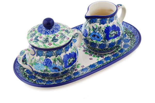Sugar and Creamer Set 10" Blue Meadow Theme UNIKAT