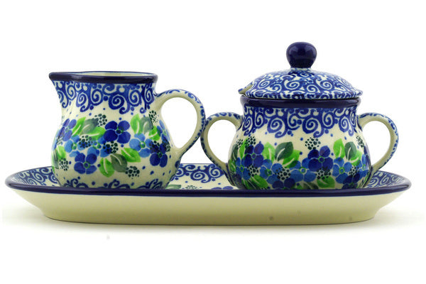 This Blue Phlox 10" Sugar and Creamer Set was handmade and hand decorated in Boleslawiec, Poland by skilled artisans according to old traditional methods. This Polish stoneware is microwave, dishwasher, freezer, and oven safe up to 480°F. It does not contain lead or cadmium. It is part of the Blue Phlox Collection.