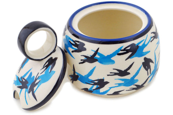 This Flocking 11 oz Sugar Bowl was handmade and hand decorated in Boleslawiec, Poland by skilled artisans according to old traditional methods. This Polish stoneware is microwave, dishwasher, freezer, and oven safe up to 480°F. It does not contain lead or cadmium. It is part of the Flocking Collection.