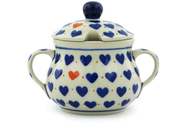 This Heart Of Hearts 7 oz Sugar Bowl was handmade and hand decorated in Boleslawiec, Poland by skilled artisans according to old traditional methods. This Polish stoneware is microwave, dishwasher, freezer, and oven safe up to 480°F. It does not contain lead or cadmium. It is part of the Heart Of Hearts Collection.