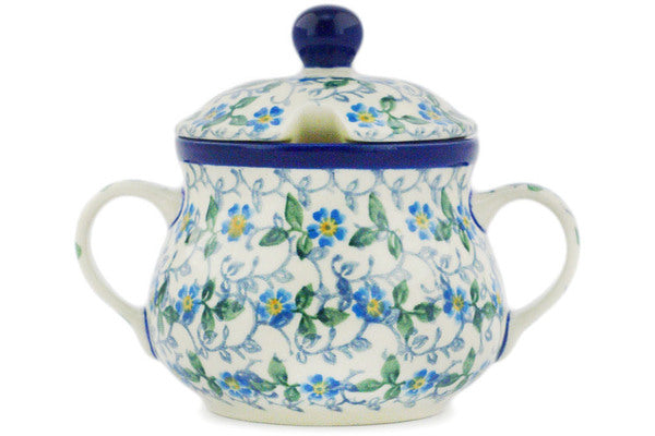This Summer Wind 7 oz Sugar Bowl was handmade and hand decorated in Boleslawiec, Poland by skilled artisans according to old traditional methods. This Polish stoneware is microwave, dishwasher, freezer, and oven safe up to 480°F. It does not contain lead or cadmium. It is part of the Summer Wind Collection.