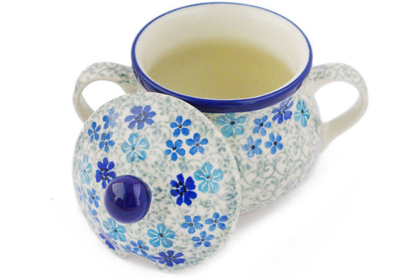 This Winter Floral 7 oz Sugar Bowl was handmade and hand decorated in Boleslawiec, Poland by skilled artisans according to old traditional methods. This Polish stoneware is microwave, dishwasher, freezer, and oven safe up to 480°F. It does not contain lead or cadmium. It is part of the Winter Floral Collection.
