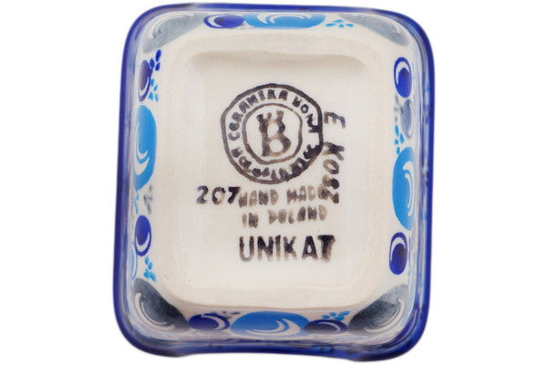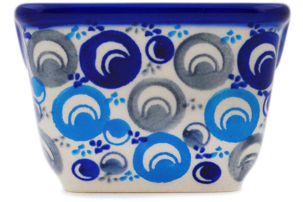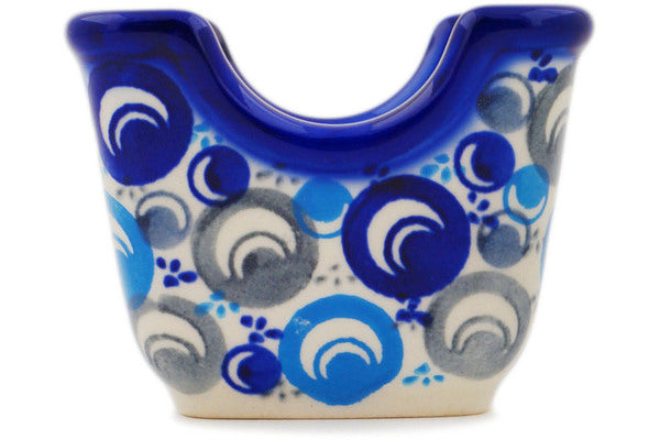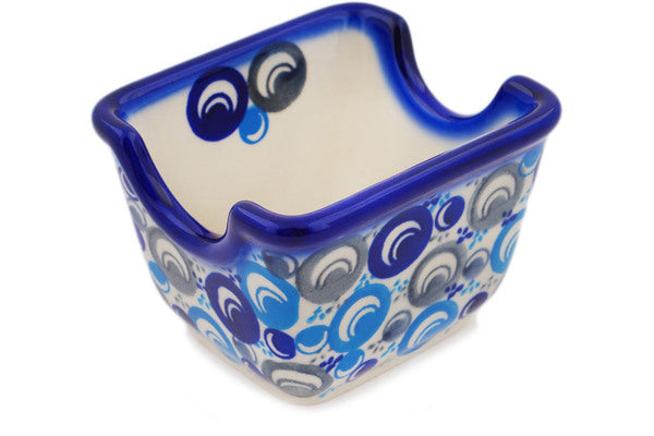 This Blue Peacock Eye 3" Sugar Packet Holder was handmade and hand decorated in Boleslawiec, Poland by skilled artisans according to old traditional methods. This Polish stoneware is microwave, dishwasher, freezer, and oven safe up to 480°F. It does not contain lead or cadmium. It is part of the Blue Peacock Eye Collection.