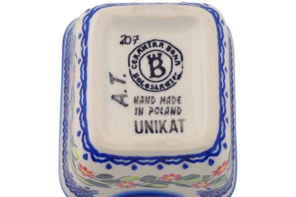 This Elegant Garland 3" Sugar Packet Holder was handmade and hand decorated in Boleslawiec, Poland by skilled artisans according to old traditional methods. This Polish stoneware is microwave, dishwasher, freezer, and oven safe up to 480°F. It does not contain lead or cadmium. It is part of the Elegant Garland Collection.