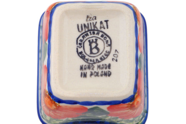 This Happiness 3" Sugar Packet Holder was handmade and hand decorated in Boleslawiec, Poland by skilled artisans according to old traditional methods. This is a Polish pottery Signature Unikat, which means that it has been hand painted with both sponges and brushes and it is signed by the artist who painted it. Unikat pieces are the most intricate works of art. Larger Unikat items take hours of very careful work to finish. This Polish stoneware is microwave, dishwasher, freezer, and oven safe up to 480°F. It does not contain lead or cadmium. It is part of the Happiness Collection.