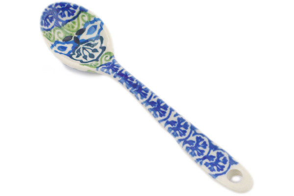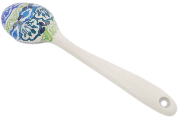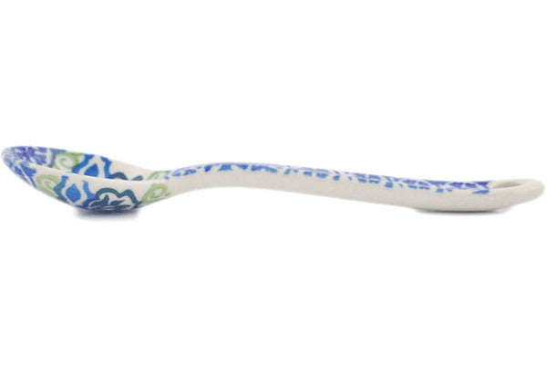 This Artistic Boho 5" Sugar Spoon was handmade and hand decorated in Boleslawiec, Poland by skilled artisans according to old traditional methods. This Polish stoneware is microwave, dishwasher, freezer, and oven safe up to 480°F. It does not contain lead or cadmium. It is part of the Artistic Boho Collection.