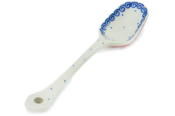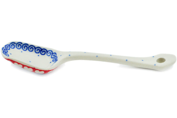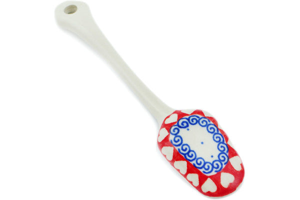 This Banner Of Hearts 5" Sugar Spoon was handmade and hand decorated in Boleslawiec, Poland by skilled artisans according to old traditional methods. This Polish stoneware is microwave, dishwasher, freezer, and oven safe up to 480°F. It does not contain lead or cadmium. It is part of the Banner Of Hearts Collection.