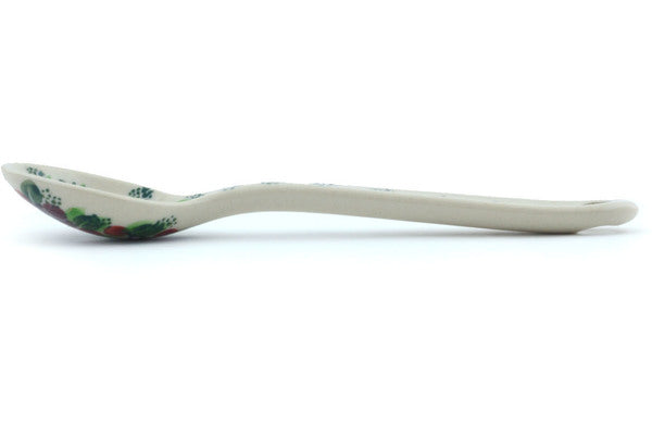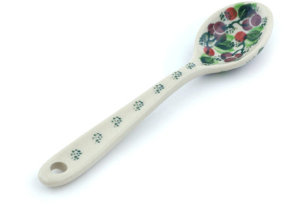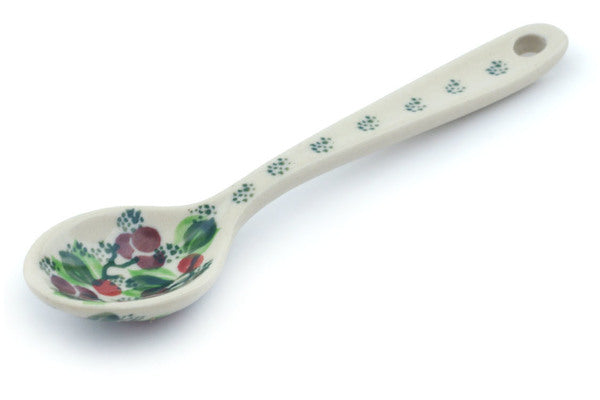 This Berry Garland 5" Sugar Spoon was handmade and hand decorated in Boleslawiec, Poland by skilled artisans according to old traditional methods. This Polish stoneware is microwave, dishwasher, freezer, and oven safe up to 480°F. It does not contain lead or cadmium. It is part of the Berry Garland Collection.