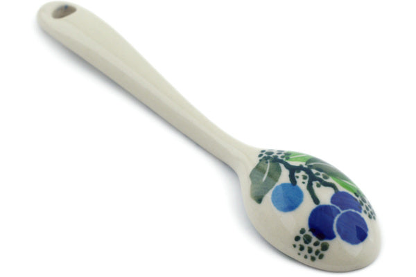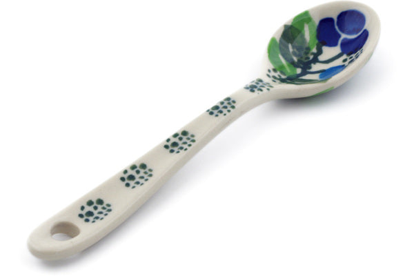 This Blue Berry Garland 5" Sugar Spoon was handmade and hand decorated in Boleslawiec, Poland by skilled artisans according to old traditional methods. This Polish stoneware is microwave, dishwasher, freezer, and oven safe up to 480°F. It does not contain lead or cadmium. It is part of the Blue Berry Garland Collection.