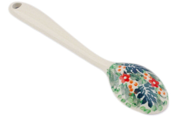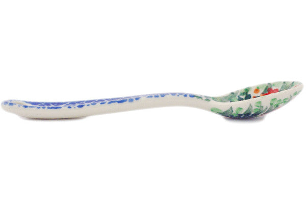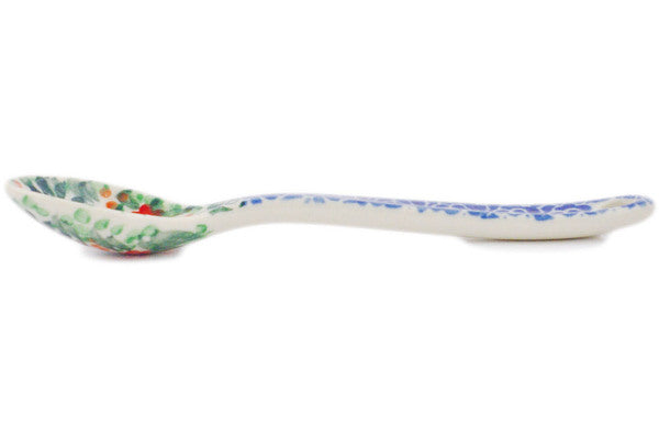 This Iris Bouquet 5" Sugar Spoon was handmade and hand decorated in Boleslawiec, Poland by skilled artisans according to old traditional methods. This is a Polish pottery Signature Unikat, which means that it has been hand painted with both sponges and brushes and it is signed by the artist who painted it. Unikat pieces are the most intricate works of art. Larger Unikat items take hours of very careful work to finish. This Polish stoneware is microwave, dishwasher, freezer, and oven safe up to 480°F. It does not contain lead or cadmium. It is part of the Iris Bouquet Collection.