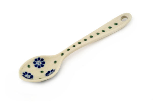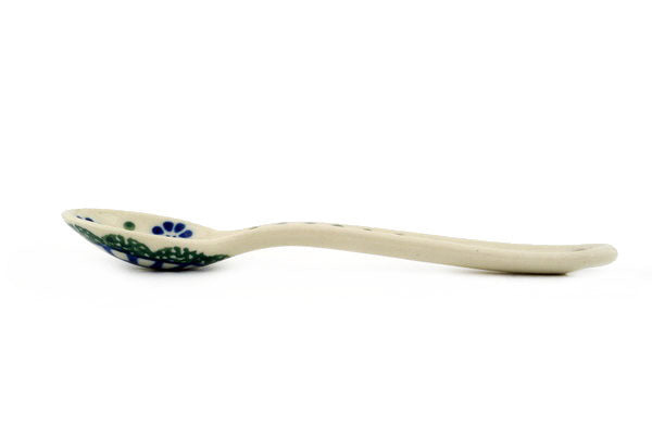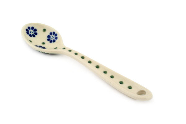 This Maia 5" Sugar Spoon was handmade and hand decorated in Boleslawiec, Poland by skilled artisans according to old traditional methods. This Polish stoneware is microwave, dishwasher, freezer, and oven safe up to 480°F. It does not contain lead or cadmium. It is part of the Maia Collection.