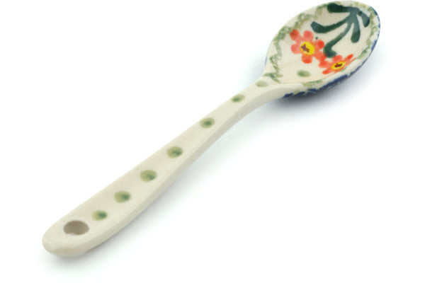 This Peach Spring Daisy 5" Sugar Spoon was handmade and hand decorated in Boleslawiec, Poland by skilled artisans according to old traditional methods. This Polish stoneware is microwave, dishwasher, freezer, and oven safe up to 480°F. It does not contain lead or cadmium. It is part of the Peach Spring Daisy Collection.