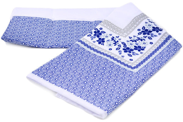 This Blue Frost 61" Tablecloth 43" x 61" Stain Resistant (110 x 155 cm) was handmade and hand decorated in Boleslawiec, Poland by skilled artisans according to old traditional methods. This is a Polish pottery Signature Unikat, which means that it has been hand painted with both sponges and brushes and it is signed by the artist who painted it. Unikat pieces are the most intricate works of art. Larger Unikat items take hours of very careful work to finish. This Polish stoneware is microwave, dishwasher, freezer, and oven safe up to 480°F. It does not contain lead or cadmium. It is part of the Blue Frost Collection.
