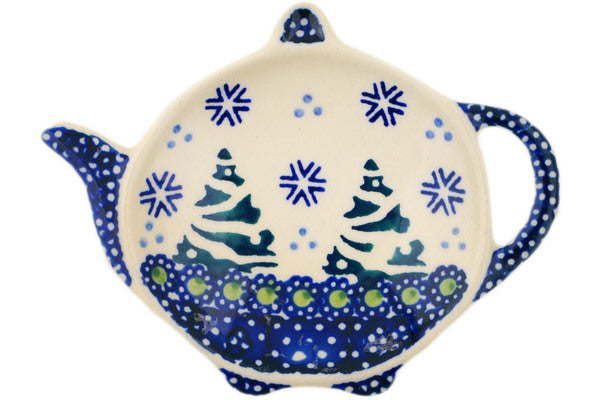 This Falling Snowflakes 4" Tea Bag or Lemon Plate was handmade and hand decorated in Boleslawiec, Poland by skilled artisans according to old traditional methods. This Polish stoneware is microwave, dishwasher, freezer, and oven safe up to 480°F. It does not contain lead or cadmium. It is part of the Falling Snowflakes Collection.