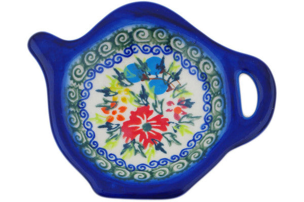 This Ring Of Flowers 4" Tea Bag or Lemon Plate was handmade and hand decorated in Boleslawiec, Poland by skilled artisans according to old traditional methods. This is a Polish pottery Signature Unikat, which means that it has been hand painted with both sponges and brushes and it is signed by the artist who painted it. Unikat pieces are the most intricate works of art. Larger Unikat items take hours of very careful work to finish. This Polish stoneware is microwave, dishwasher, freezer, and oven safe up to 480°F. It does not contain lead or cadmium. It is part of the Ring Of Flowers Collection.