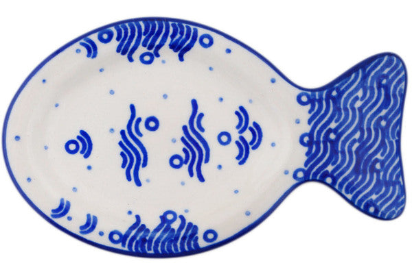 This Beach Waves 5" Tea Bag or Lemon Plate was handmade and hand decorated in Boleslawiec, Poland by skilled artisans according to old traditional methods. This Polish stoneware is microwave, dishwasher, freezer, and oven safe up to 480°F. It does not contain lead or cadmium. It is part of the Beach Waves Collection.