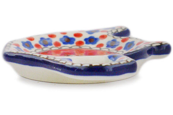 This Crimson Poppies 5" Tea Bag or Lemon Plate was handmade and hand decorated in Boleslawiec, Poland by skilled artisans according to old traditional methods. This is a Polish pottery Signature Unikat, which means that it has been hand painted with both sponges and brushes and it is signed by the artist who painted it. Unikat pieces are the most intricate works of art. Larger Unikat items take hours of very careful work to finish. This Polish stoneware is microwave, dishwasher, freezer, and oven safe up to 480°F. It does not contain lead or cadmium. It is part of the Crimson Poppies Collection.
