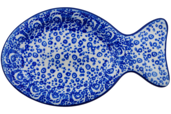This Raindrops 5" Tea Bag or Lemon Plate was handmade and hand decorated in Boleslawiec, Poland by skilled artisans according to old traditional methods. This is a Polish pottery Signature Unikat, which means that it has been hand painted with both sponges and brushes and it is signed by the artist who painted it. Unikat pieces are the most intricate works of art. Larger Unikat items take hours of very careful work to finish. This Polish stoneware is microwave, dishwasher, freezer, and oven safe up to 480°F. It does not contain lead or cadmium. It is part of the Raindrops Collection.