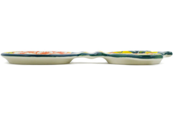 This Orange Peonies 8" Tea Bag or Lemon Plate was handmade and hand decorated in Boleslawiec, Poland by skilled artisans according to old traditional methods. This is a Polish pottery Signature Unikat, which means that it has been hand painted with both sponges and brushes and it is signed by the artist who painted it. Unikat pieces are the most intricate works of art. Larger Unikat items take hours of very careful work to finish. This Polish stoneware is microwave, dishwasher, freezer, and oven safe up to 480°F. It does not contain lead or cadmium. It is part of the Orange Peonies Collection.