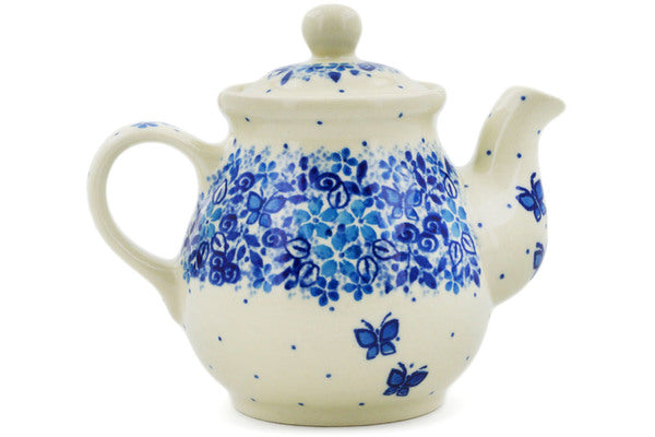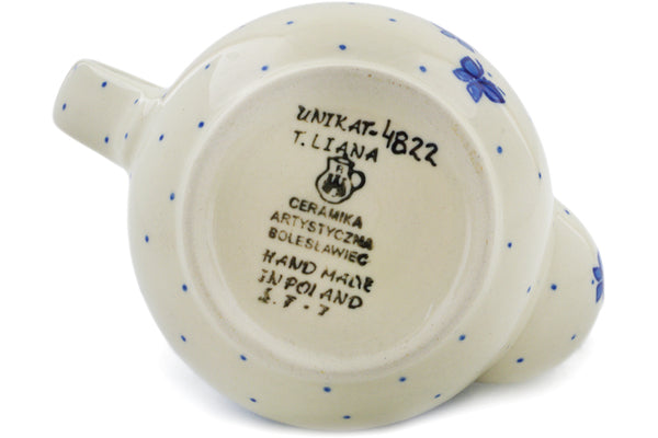 This Delicate Blue 13 oz Tea or Coffee Pot was handmade and hand decorated in Boleslawiec, Poland by skilled artisans according to old traditional methods. This is a Polish pottery Signature Unikat, which means that it has been hand painted with both sponges and brushes and it is signed by the artist who painted it. Unikat pieces are the most intricate works of art. Larger Unikat items take hours of very careful work to finish. This Polish stoneware is microwave, dishwasher, freezer, and oven safe up to 480°F. It does not contain lead or cadmium. It is part of the Delicate Blue Collection.