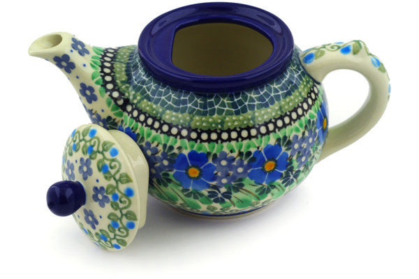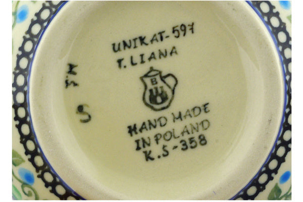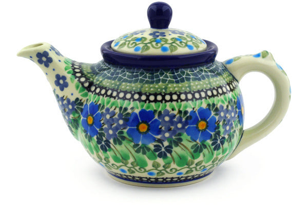 This Hiking Song 13 oz Tea or Coffee Pot was handmade and hand decorated in Boleslawiec, Poland by skilled artisans according to old traditional methods. This is a Polish pottery Signature Unikat, which means that it has been hand painted with both sponges and brushes and it is signed by the artist who painted it. Unikat pieces are the most intricate works of art. Larger Unikat items take hours of very careful work to finish. This Polish stoneware is microwave, dishwasher, freezer, and oven safe up to 480°F. It does not contain lead or cadmium. It is part of the Hiking Song Collection.