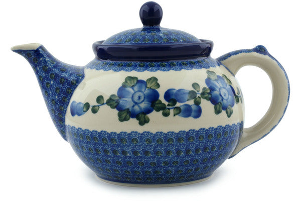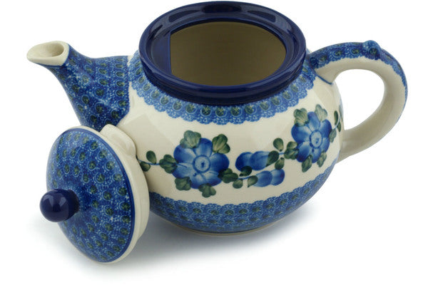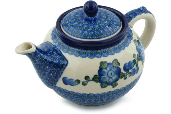 This Blue Poppies 5 cups Tea or Coffee Pot was handmade and hand decorated in Boleslawiec, Poland by skilled artisans according to old traditional methods. This Polish stoneware is microwave, dishwasher, freezer, and oven safe up to 480°F. It does not contain lead or cadmium. It is part of the Blue Poppies Collection.